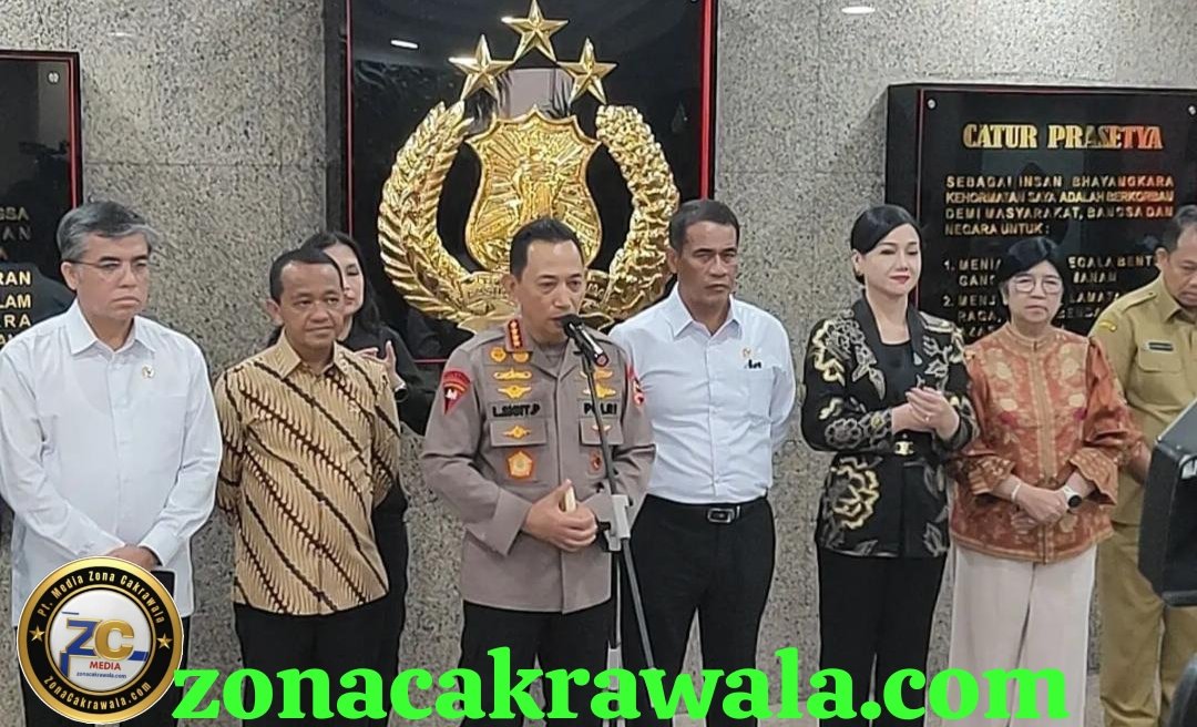 zonacakrawala.com Jakarta – Kapolri Jenderal Pol. Drs. Listyo Sigit Prabowo M.Si., menggelar rapat koordinasi (rakor) lintas sektoral bersama sejumlah menteri Kabinet Merah Putih dan pimpinan lembaga tinggi negara di Gedung Utama Mabes Polri, Jakarta Selatan, Selasa (28/4/2026). Pertemuan strategis ini difokuskan pada langkah mitigasi dalam menghadapi eskalasi global yang berpotensi memengaruhi stabilitas keamanan dan ekonomi di dalam negeri.