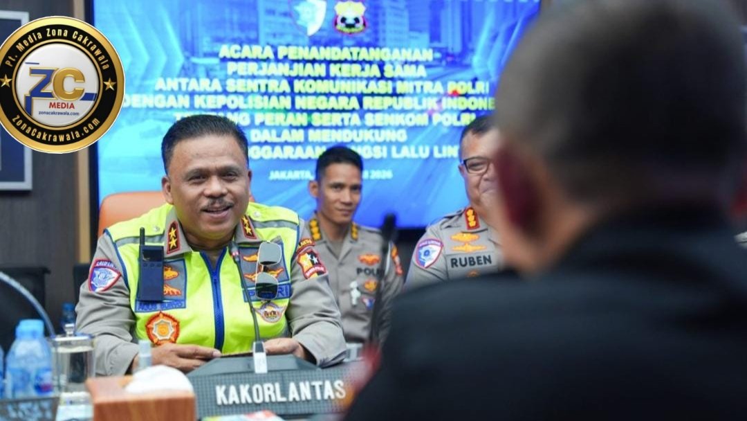 zonacakrawala.com. Jakarta – Korlantas Polri bersama Sentra Komunikasi (Senkom) Mitra Polri memperkuat sinergi dengan penandatanganan Perjanjian Kerja Sama dalam mendukung penyelenggaraan fungsi lalu lintas. Kesepakatan tersebut ditandatangani Kakorlantas Polri Irjen Pol Drs. Agus Suryonugroho, S.H., M.Hum. bersama Ketua Umum Senkom Mitra Polri Katno Hadi di Ruang Rapat Kakorlantas pada Rabu (21/1/2026).