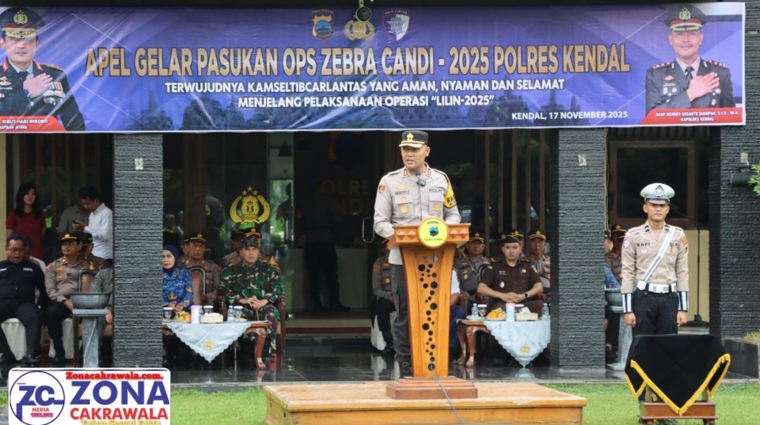zonacakrawala.com. KENDAL — Suasana pagi di halaman Mapolres Kendal, Senin (17/11/2025), dipenuhi derap tegas pasukan dari berbagai satuan. Di bawah langit yang cerah, barisan aparat kepolisian, TNI, Dishub, dan Satpol PP berdiri rapi mengikuti Apel Gelar Pasukan Operasi Zebra Candi 2025—sebuah penanda dimulainya upaya bersama menjaga keselamatan berlalu lintas di wilayah Kendal.