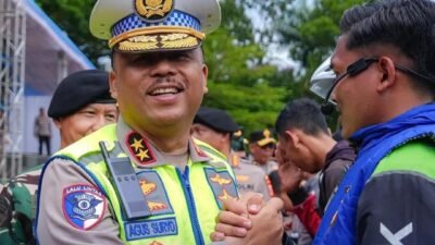 zonacakrawala.com. Bandung, – Kepala Korps Lalu Lintas (Kakorlantas) Polri Irjen Pol Drs. Agus Suryonugroho, S.H., M.Hum., mendampingi Kapolri dalam Apel Ojek Online (Ojol) Keamanan dan Ketertiban Masyarakat (Kamtibmas) di Lapangan Upakarti, Soreang, Kabupaten Bandung, Jawa Barat, Sabtu (8/11/2025).