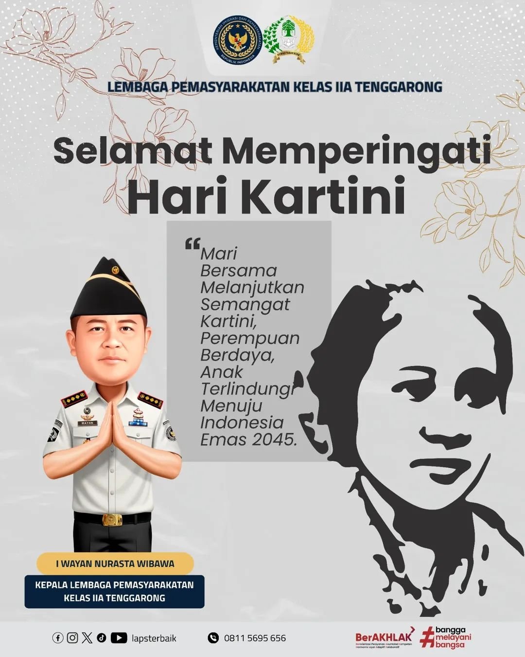 Dalam pesannya, Kalapas menekankan bahwa semangat Kartini tidak hanya sebatas peringatan seremonial, tetapi harus diwujudkan dalam tindakan nyata. “Mari bersama melanjutkan semangat Kartini, perempuan berdaya, anak terlindungi menuju Indonesia Emas 2045,” demikian kutipan yang disampaikan dalam desain ucapan tersebut.