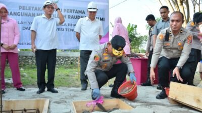zonacakrawala.com. Palu – Kapolda Sulawesi Tengah Irjen Pol Dr. Agus Nugroho yang juga selaku Penasihat Yayasan Kemala Bhayangkari (YKB) Daerah Sulteng menghadiri peletakan batu pertama pembangunan Mushollah Raudhatul Ilmi di Sekolah Yayasan Kemala Bhayangkari Daerah Sulawesi Tengah, Kamis (18/9/2025).