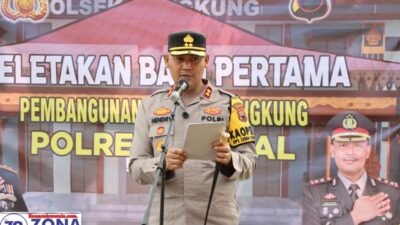 zonacakrawala.com. KENDAL — Cahaya pagi menyapu lembut lahan kosong di Jalan KH Ibrohim, Kangkung, ketika sejumlah warga, tokoh agama, aparat TNI–Polri, dan pemerintah kecamatan mulai berkumpul, Jumat (21/11/2025). Di tengah suasana hangat itu, peletakan batu pertama pembangunan Mapolsek Kangkung digelar, menandai langkah penting Polres Kendal dalam memperkuat keamanan sekaligus mendekatkan layanan kepolisian kepada masyarakat.
