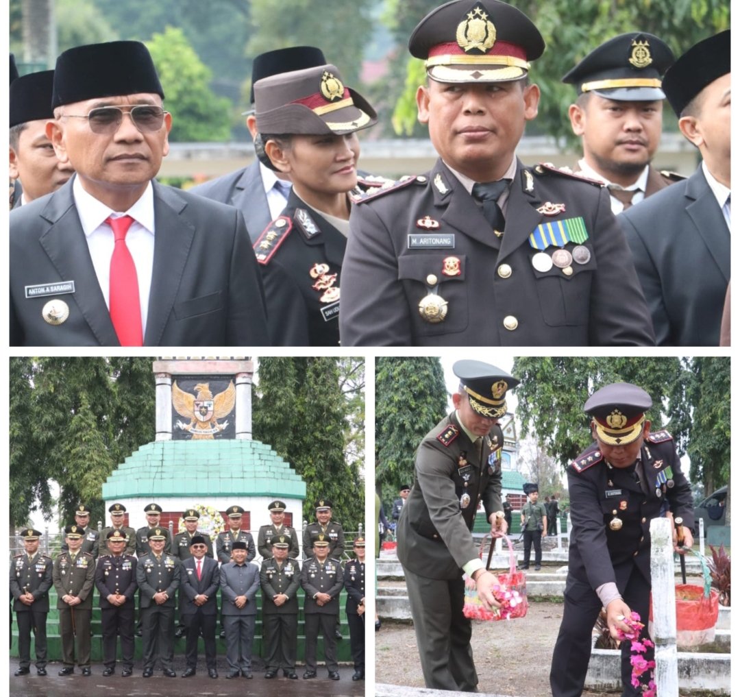 zonacakrawala.com. PEMATANGSIANTAR – Dalam rangka memperingati Hari Ulang Tahun Tentara Nasional Indonesia (TNI) ke-80 tahun 2025, Kapolres Simalungun bersama jajaran Forkopimda dan pejabat terkait mengikuti upacara Ziarah Kubur Nasional dan Tabur Bunga di Taman Makam Pahlawan (TMP) Nagur Pematangsiantar. Kegiatan yang berlangsung khidmat ini menjadi wujud penghormatan terhadap jasa para pahlawan yang telah berjuang untuk kemerdekaan Indonesia.