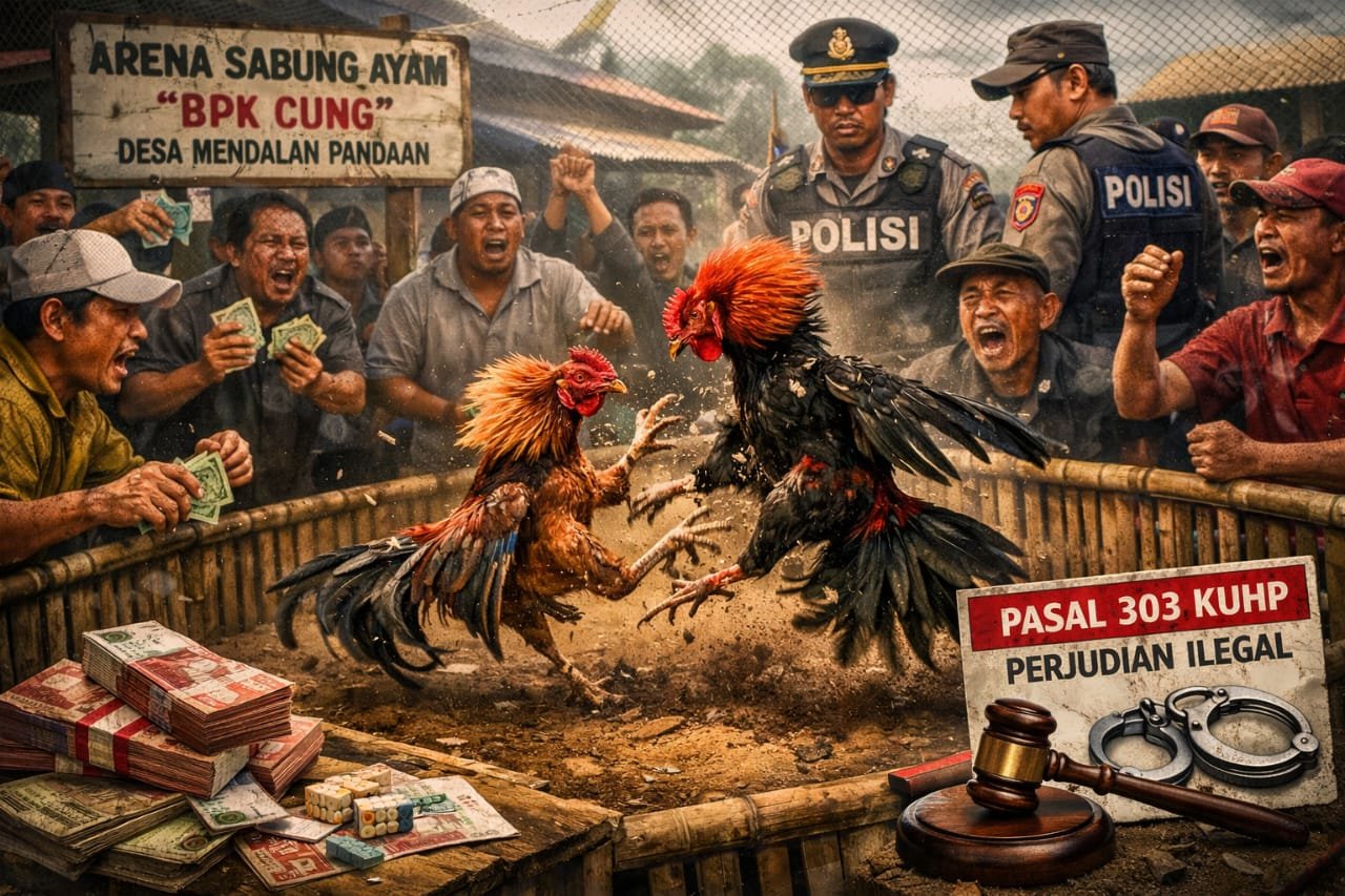 Zonacakrawala.com | Pasuruan, – Dugaan praktik perjudian sabung ayam kembali mencuat di Desa Mendalan, Kecamatan Pandaan, Kabupaten Pasuruan. Aktivitas yang disinyalir berlangsung sejak sekitar pukul 14.00 WIB itu disebut masih terus berjalan hingga saat ini, meski secara terang-benderang bertentangan dengan hukum pidana di Indonesia.