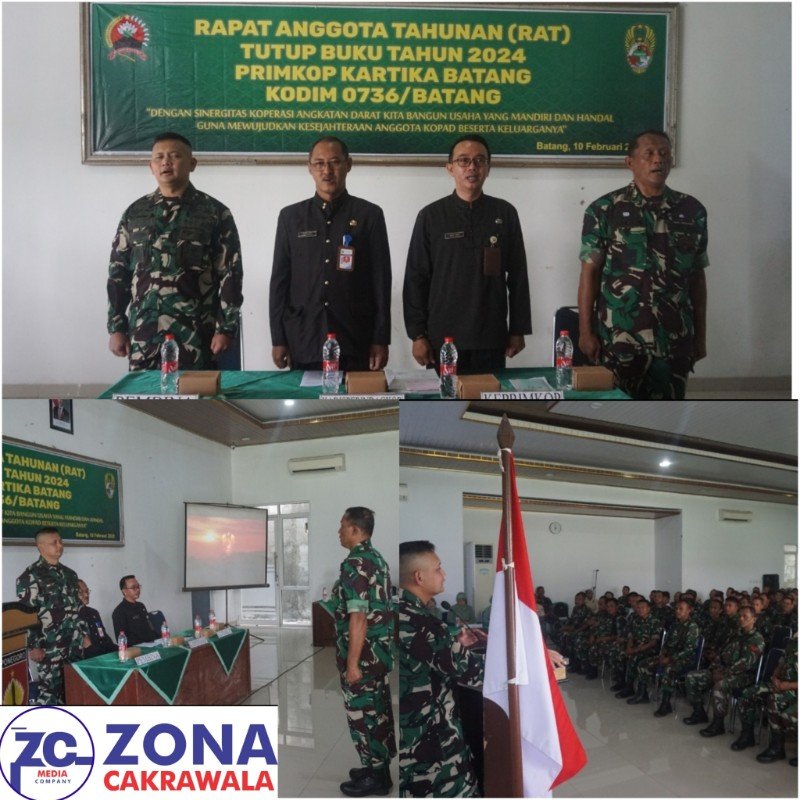 Zonacakrawala.com. Batang,– Kodim 0736/Batang menggelar Rapat Anggota Tahunan (RAT) ke-56 Primer Koperasi Kartika A-10 Batang untuk tutup buku tahun 2024 pada Senin (10/2/2025). Kegiatan ini berlangsung di Aula Makodim 0736/Batang serta dihadiri oleh seluruh anggota koperasi, baik prajurit TNI maupun PNS Kodim 0736Batang dan Minvetcad IV-09 Batang.