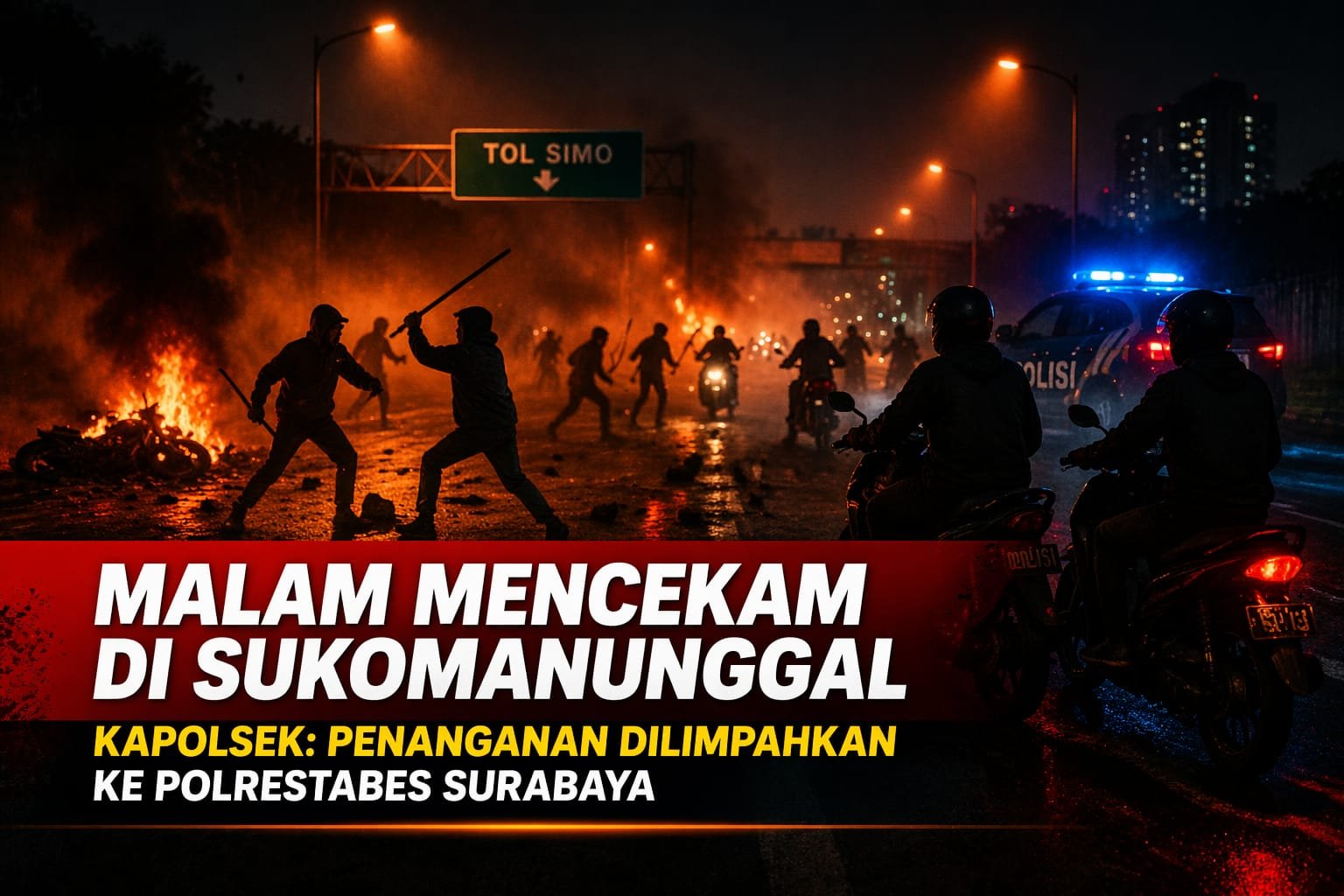 Zonacakrawala.com | Surabaya — Dugaan aksi tawuran yang melibatkan dua kelompok pemuda terjadi di kawasan Jalan Tol Simo, Kecamatan Sukomanunggal, Sabtu malam (18 April 2026). Peristiwa tersebut menimbulkan keresahan di kalangan masyarakat sekitar.