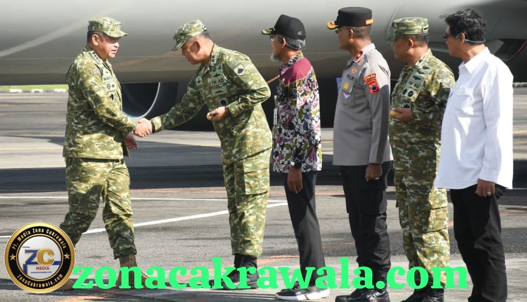 zonacakrawala.com  Semarang – Pangdam IV/Diponegoro Mayjen TNI Achiruddin, S.E., M.Han., menyambut kunjungan kerja Menteri Pertahanan RI Jenderal TNI (Purn) Dr. Sjafrie Sjamsoeddin dan Panglima TNI Jenderal TNI Agus Subiyanto, S.E., M.Si., di Lanumad Ahmad Yani, Kamis (23/4/2026). Kedatangan rombongan tingkat pusat yang juga didampingi Kepala Staf Angkatan Darat Jenderal TNI Maruli Simanjuntak, M.Sc., ini merupakan bagian dari agenda penguatan pertahanan negara di wilayah Jawa Tengah.