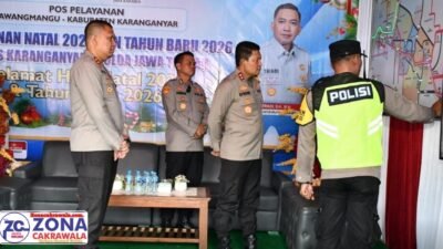 zonacakrawala.com. Karanganyar – Kapolda Jawa Tengah Irjen Pol Ribut Hari Wibowo, S.H., S.I.K., M.H. melakukan kunjungan ke Pos Pelayanan (Posyan) Tawangmangu dalam rangka Operasi Lilin Candi 2025, Selasa (23/12/2025). Kunjungan ini dilakukan untuk memastikan kesiapan personel serta pelayanan kepada masyarakat berjalan dengan optimal selama perayaan Natal 2025 dan Tahun Baru 2026.