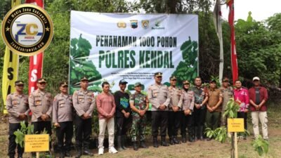 zonacakrawala.com. KENDAL – Polres Kendal menggelar kegiatan penanaman 1.000 pohon di kawasan Kedung Pengilon, Desa Tunggulsari, Kecamatan Brangsong, Kabupaten Kendal, Selasa (13/1/2026). Kegiatan ini dipimpin langsung oleh Kapolres Kendal AKBP Hendry Susanto Sianipar dan diikuti unsur pemerintah daerah, TNI, tokoh masyarakat, serta warga setempat.