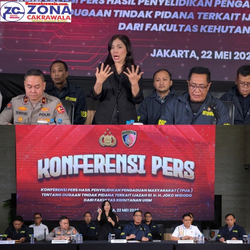 zonacakrawala.com. Jakarta – Bareskrim Polri menegaskan bahwa dokumen ijazah Joko Widodo dinyatakan asli dan sah berdasarkan hasil penyelidikan dan uji forensik yang mendalam. Hal ini disampaikan dalam konferensi pers oleh Direktorat Tindak Pidana Umum (Dittipidum) Bareskrim Polri di Lobby Utama Gedung Awaloedin Djamin, Bareskrim Polri, Jakarta, Kamis (22/5).