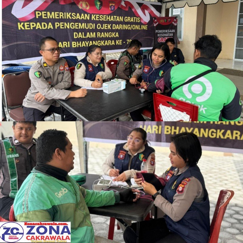 zonacakrawala.com. Palangka Raya – Bidang Dokteran dan Kesehatan (Biddokkes) Polda Kalimantan Tengah (Kalteng) menggelar bakti kesehatan dengan memberikan layanan pemeriksaan kesehatan (Rikkes) gratis bagi para pengemudi ojek online (Ojol) di wilayah Kalteng.