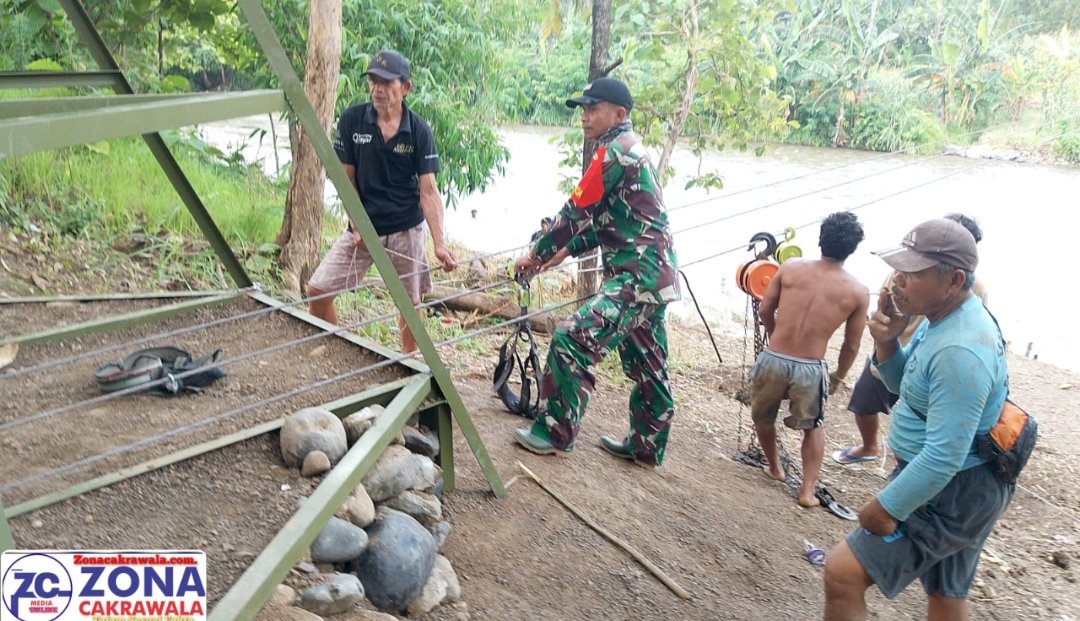 zonacakrawala.com. Kab. Semarang – para Prajurit Babinsa Kodim 0714/Salatiga bersama dengan komunitas Rubicon Off Road dan masyarakat bersinergi bersama untuk membangun jembatan gantung di Dusun Krajan RT 02/01, Desa Kalikurmo, Kecamatan Bringin, Kab. Semarang.