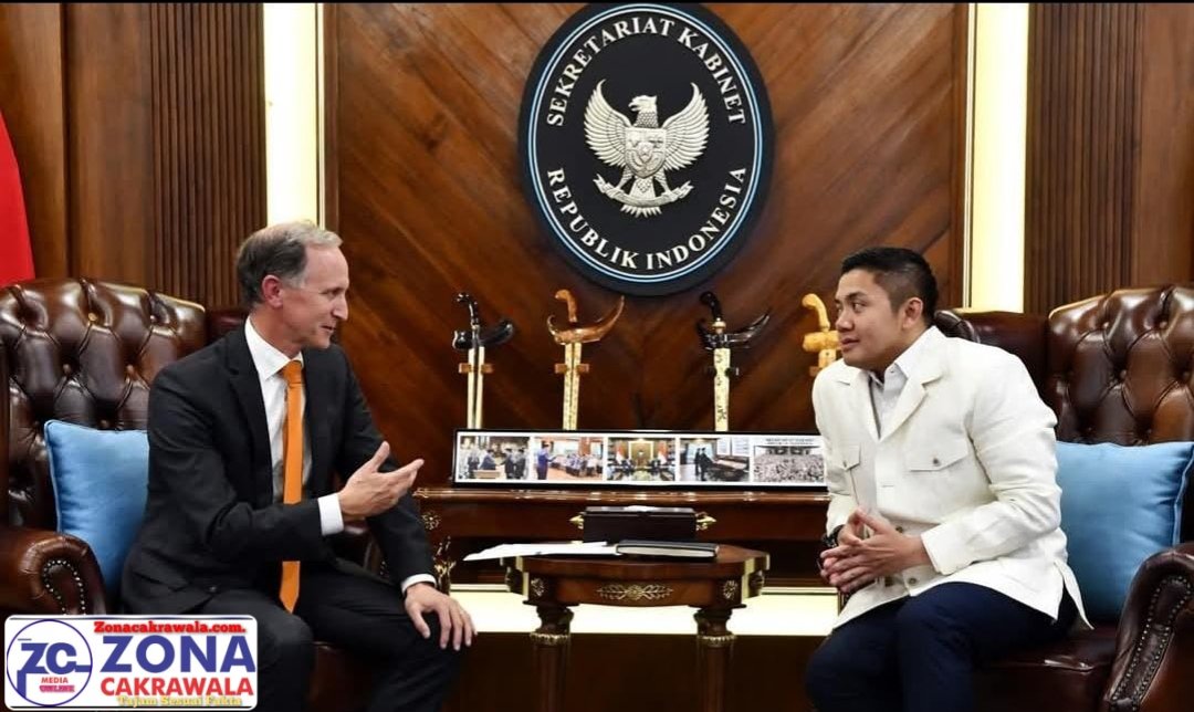 zonacakrawala.com. Jakarta, 21 November 2025 – Sekretaris Kabinet (Seskab) Teddy Indra Wijaya hari ini menerima kunjungan kehormatan Duta Besar (Dubes) Belanda untuk Indonesia, Marc Gerritsen, di Gedung Sekretariat Kabinet. Pertemuan ini berlangsung tepat setahun setelah Dubes Gerritsen menyerahkan surat kepercayaan kepada Presiden Prabowo Subianto pada November tahun lalu.