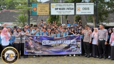 zonacakrawala.com. KENDAL – Satuan Lalu Lintas (Satlantas) Polres Kendal terus masif melakukan edukasi kepada generasi muda. Kali ini, dipimpin langsung oleh Kanit Kamsel Iptu Karyono, S.H., dan jajaran Satlantas Polres kendal menyambangi siswa-siswi SMP Negeri 3 Patean dalam rangka sosialisasi Operasi Keselamatan Candi 2026, Rabu (04/02/2026).