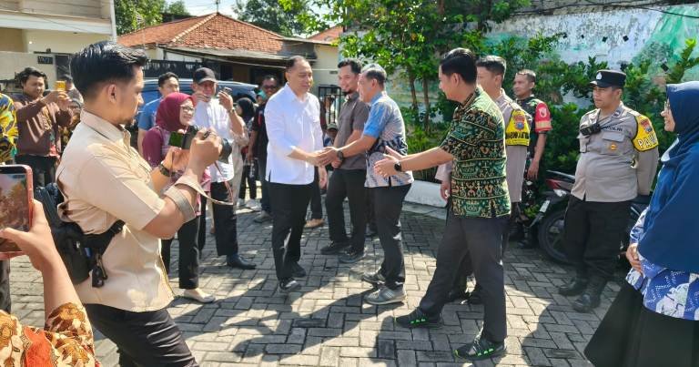 Zonacakrawala.com | Surabaya – Wali Kota Surabaya Eri Cahyadi meninjau kegiatan pasar murah di Kelurahan Simomulyo Baru, Kecamatan Sukomanunggal, dengan pengamanan dari Polsek Sukomanunggal guna memastikan kegiatan berjalan aman dan tertib, Kamis 12 Maret 2026.